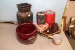 1108 Four Trays, Five Metal Tins, Planter & Vase