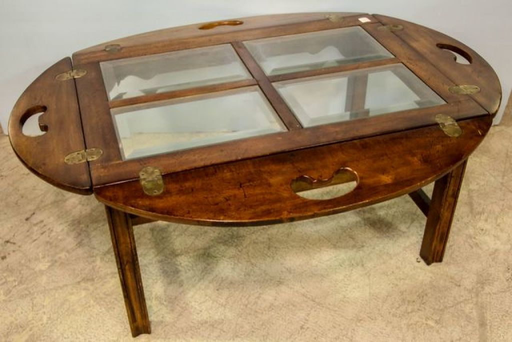 With beveled glass inserts; 44" w., 18" h., 34" d. With beveled glass inserts; 44" w., 18" h., 34" d.