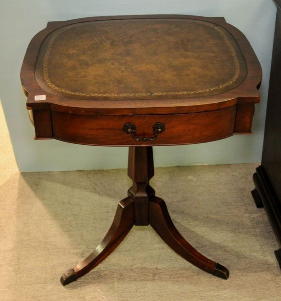 With one drawer; 25" square, 29" h. With one drawer; 25" square, 29" h.