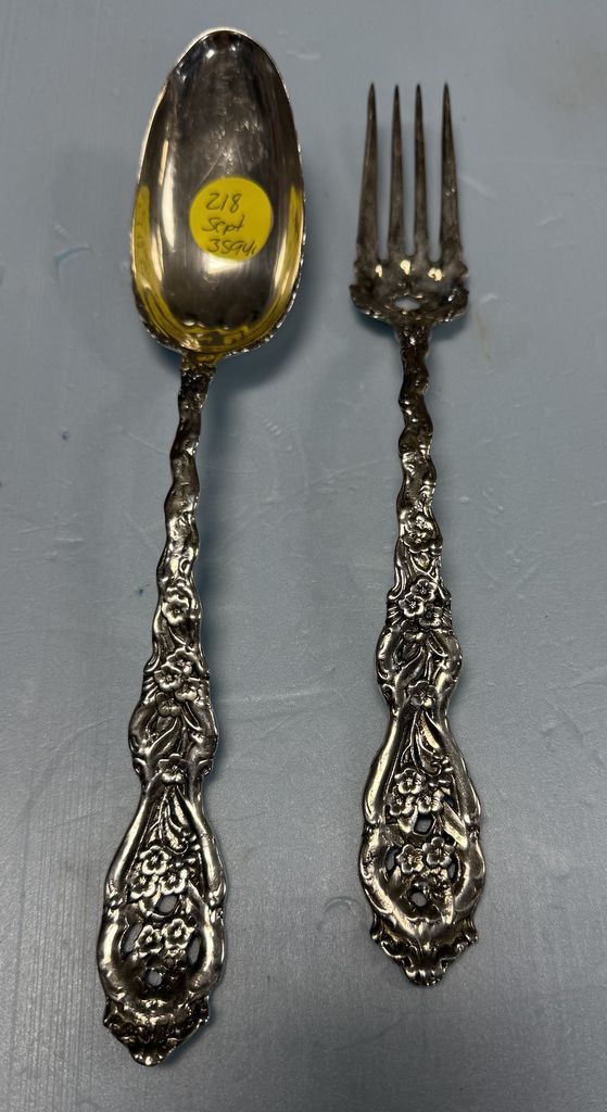 218 7.045 ozt Sterling 11" Serving Spoon and Fork
