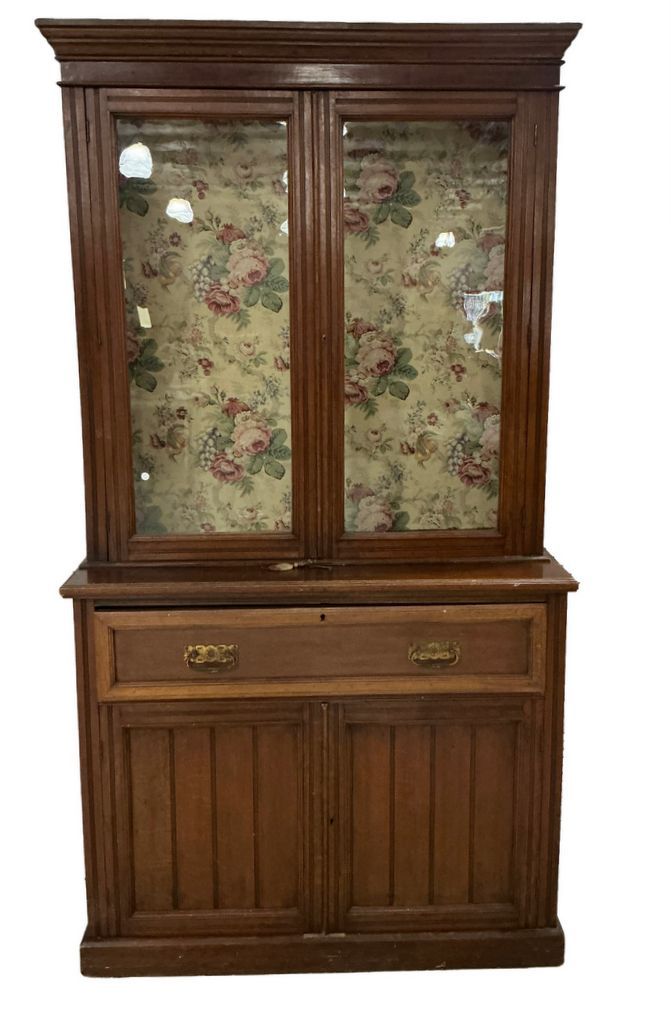 80"h., 48"w Antique Bookcase Secretary Desk, two piece, glass door, missing shelves 80"h., 48"w Antique Bookcase Secretary Desk, two piece, glass door, missing shelves