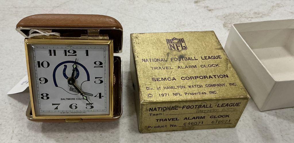 Original 1971 Baltimore Colts Clock, National Football League Travel Alarm Clock, Location Front Shelves Case Original 1971 Baltimore Colts Clock, National Football League Travel Alarm Clock, Location Front Shelves Case