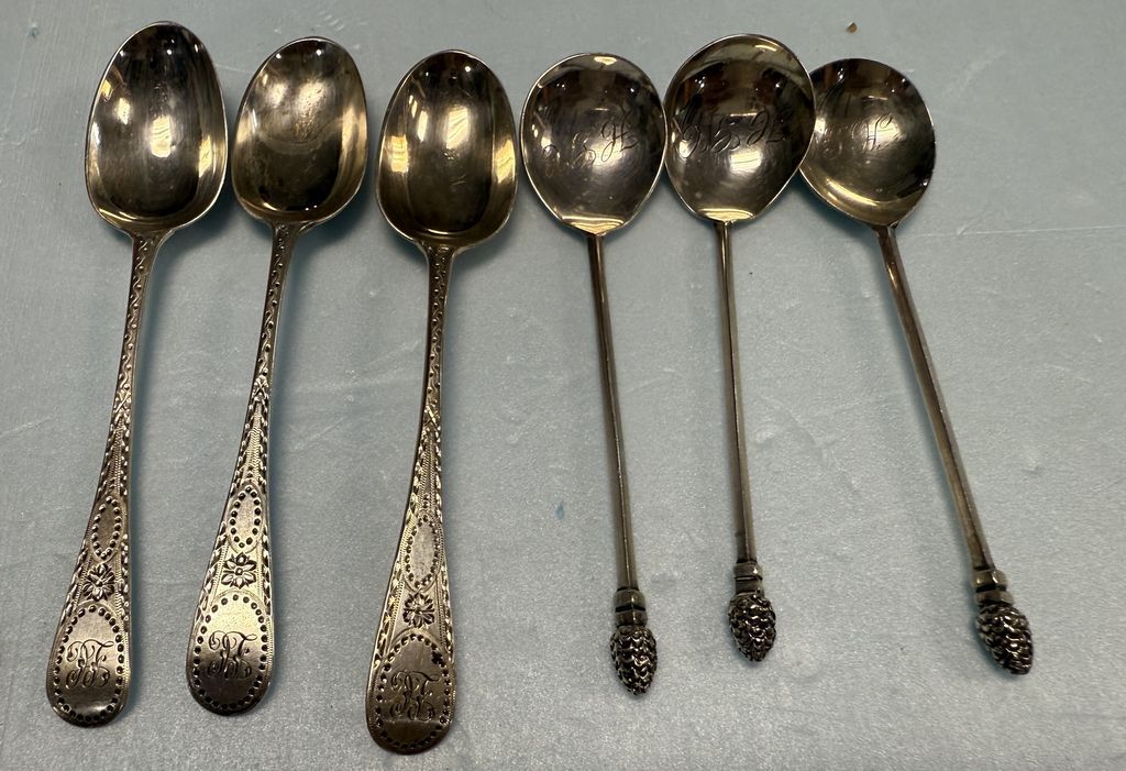 1.965 ozt 6 Assorted Sterling Spoons Location Front Case 1.965 ozt 6 Assorted Sterling Spoons Location Front Case