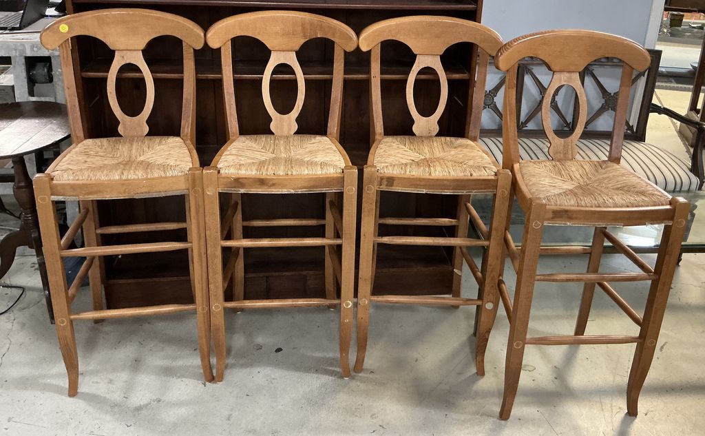 Four Pottery Barn Napoleon Bar Stools, woven seats Four Pottery Barn Napoleon Bar Stools, woven seats