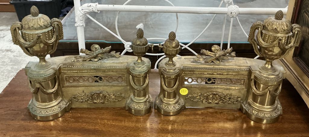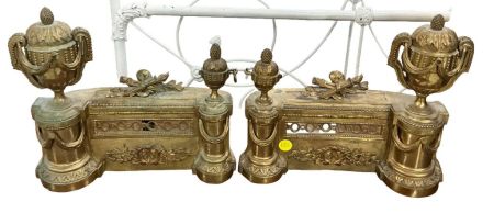 Brass Neoclassical Fire Gate Pieces, missing middle piece Brass Neoclassical Fire Gate Pieces, missing middle piece