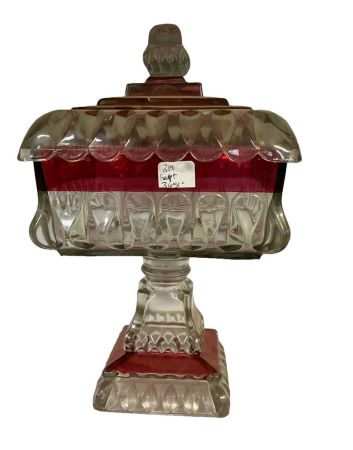 Westmoreland Wedding Ruby Flash Crystal Glass Covered Candy Dish 12"h 7"d Location Left Shelves 1 Westmoreland Wedding Ruby Flash Crystal Glass Covered Candy Dish 12"h 7"d Location Left Shelves 1