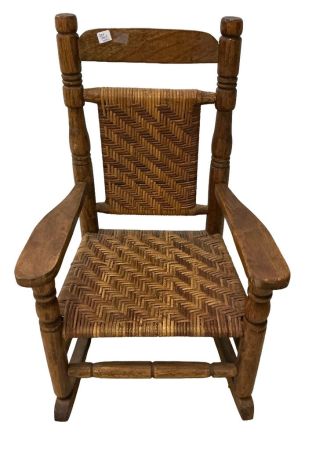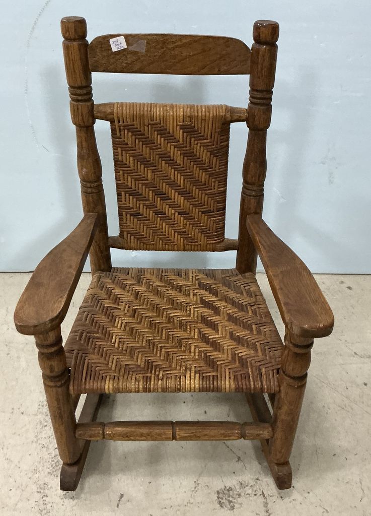 VTG Child's Oak Rocker, woven seat, good condition. VTG Child's Oak Rocker, woven seat, good condition.