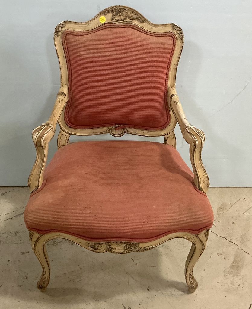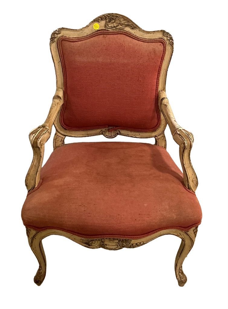 French Distressed Carved Bergere Chair French Distressed Carved Bergere Chair