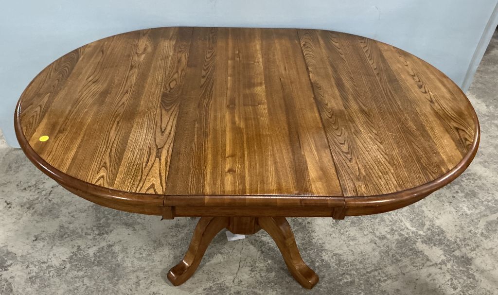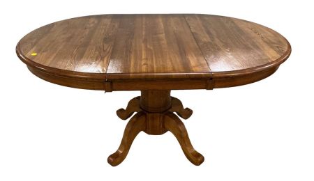 Late 20th Century Pedestal Oak Dining Table, one leaf. Late 20th Century Pedestal Oak Dining Table, one leaf.
