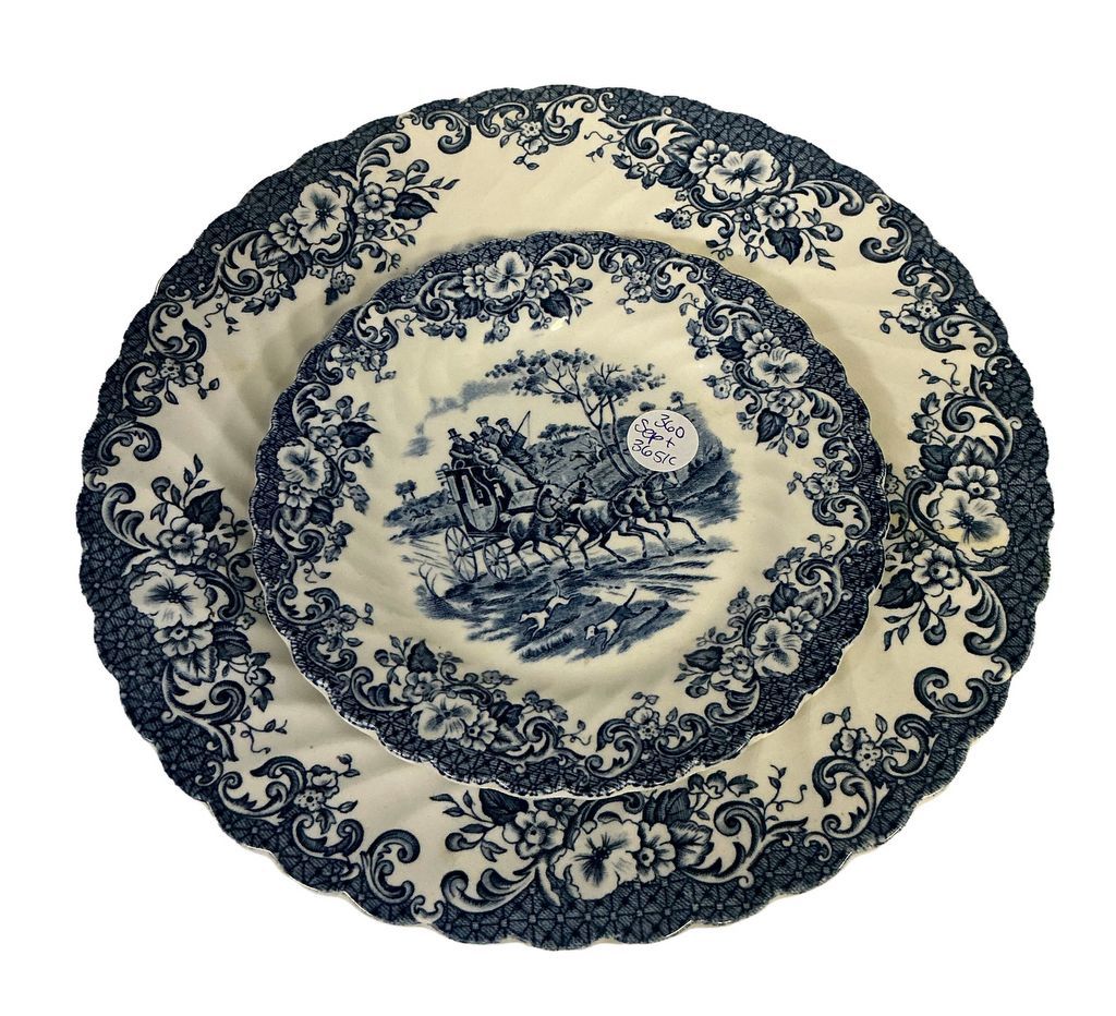 2pc Johnson Bros Hunting Country Ironstone Plates 10"d & 6.5"d Location Left Shelves 2 2pc Johnson Bros Hunting Country Ironstone Plates 10"d & 6.5"d Location Left Shelves 2