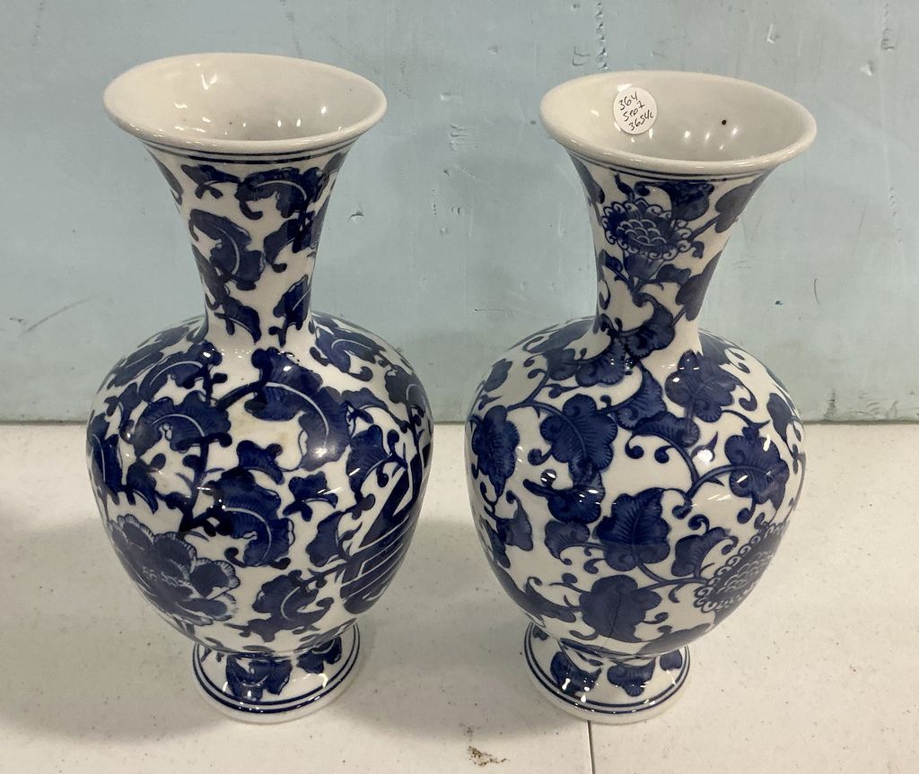 364 Pair of Blue and White Ceramic Vases 12"'h