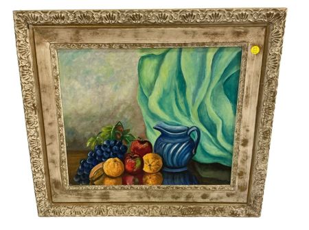 Signed Jewel Still Life Painting on board, framed, 29"h.,33"w Location Front Shelves Signed Jewel Still Life Painting on board, framed, 29"h.,33"w Location Front Shelves
