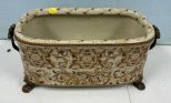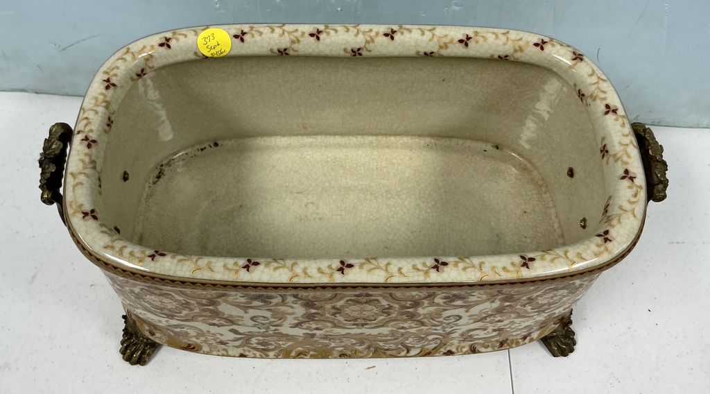 Amita Porcelain and Brass Planter, footed, 7"h., 11"w Location Front Shelves Amita Porcelain and Brass Planter, footed, 7"h., 11"w Location Front Shelves
