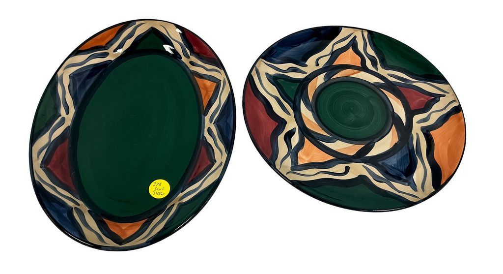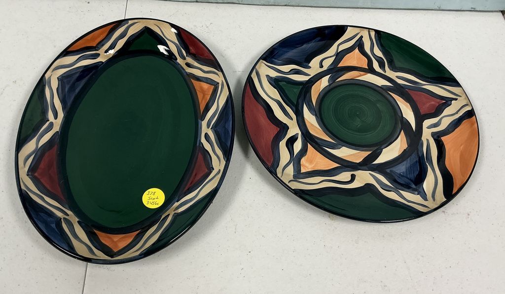 378 Gail Pittman Ceramic Platter and Round Plate 12"dia