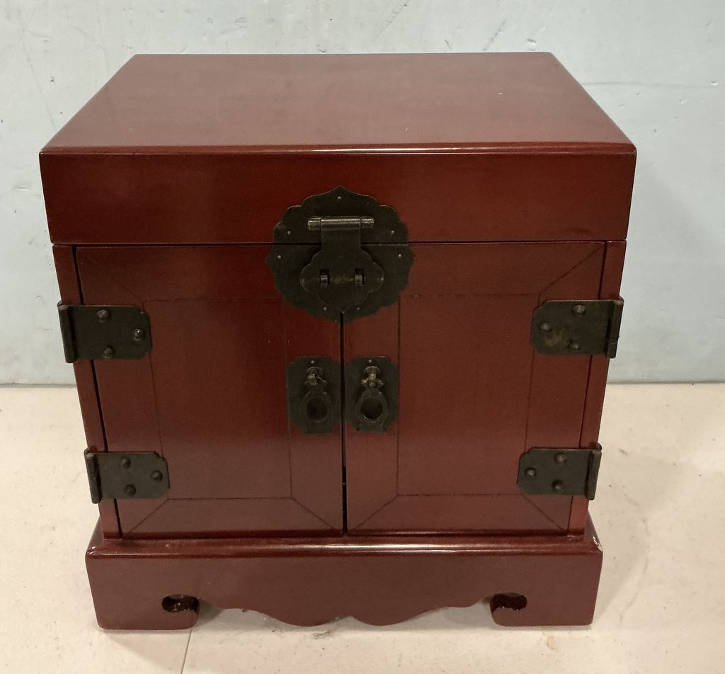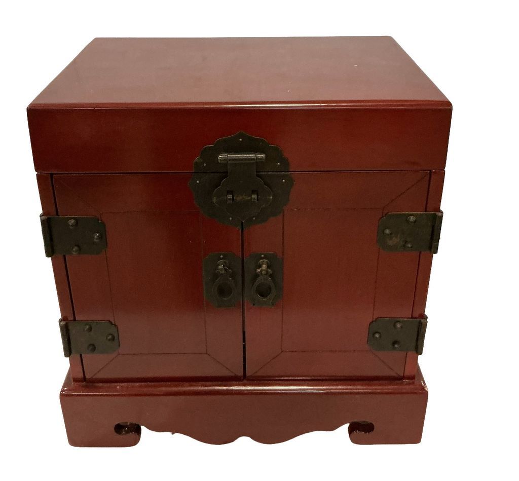 385 Chinese Red Jewelry Cabinet 15"h., 13"w
