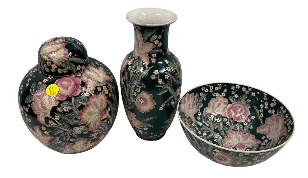 Chinese Modern Painted Flower Vases and Bowl, Location Front Shelves Chinese Modern Painted Flower Vases and Bowl, Location Front Shelves