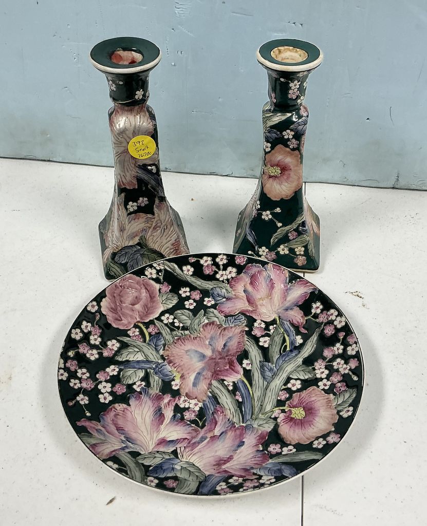 Chinese Modern Painted Candle Sticks and Plate, Location Front Shelves Chinese Modern Painted Candle Sticks and Plate, Location Front Shelves