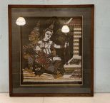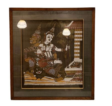 403 Framed 1970s Thai Painting On Silk Print 25"h, 23"w