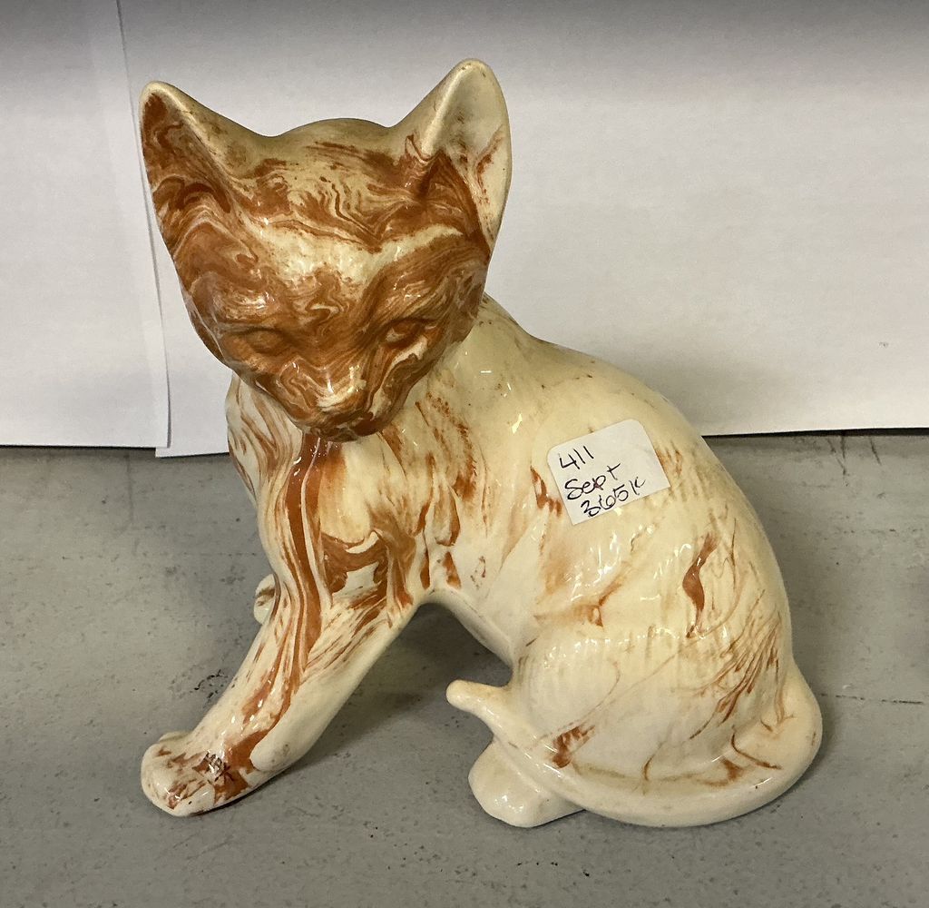 411 Cat Figurine made from Alabama Clay, Signed. 7"h 6"w