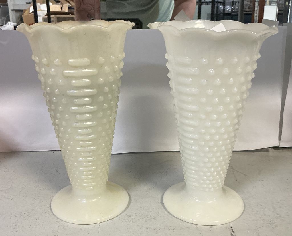 Anchor Hocking white milk glass vases 9"h 5"d 9"h 5"d Location Left Shelves 1 Anchor Hocking white milk glass vases 9"h 5"d 9"h 5"d Location Left Shelves 1