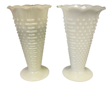 438 Anchor Hocking white milk glass vases 9"h 5"d