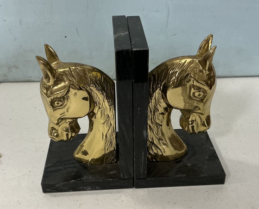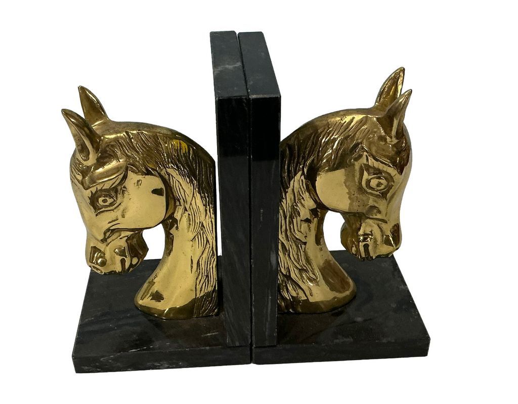 Mid Century Brass and Marble Horse Bookends 8"h Location Shelf 37 Mid Century Brass and Marble Horse Bookends 8"h Location Shelf 37