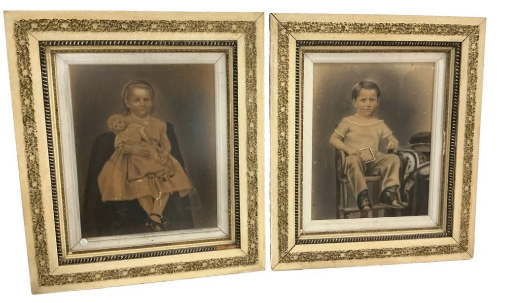 Pair of Antique Photographs of Children 31"h., 28"w Location Front Shelves Pair of Antique Photographs of Children 31"h., 28"w Location Front Shelves