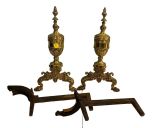 464 Pair of Neoclassical Style Brass Andirons 18"h