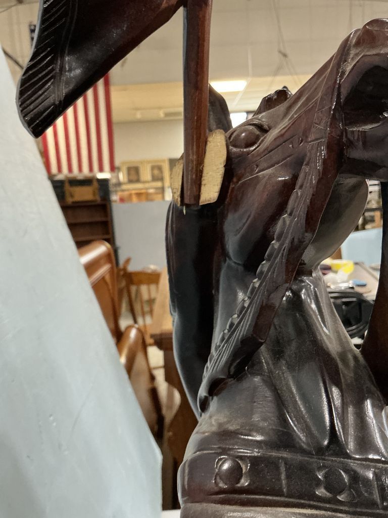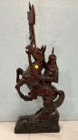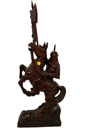 Wood Carved Mongol Warrior Sculpture, has damage, 38"h Wood Carved Mongol Warrior Sculpture, has damage, 38"h