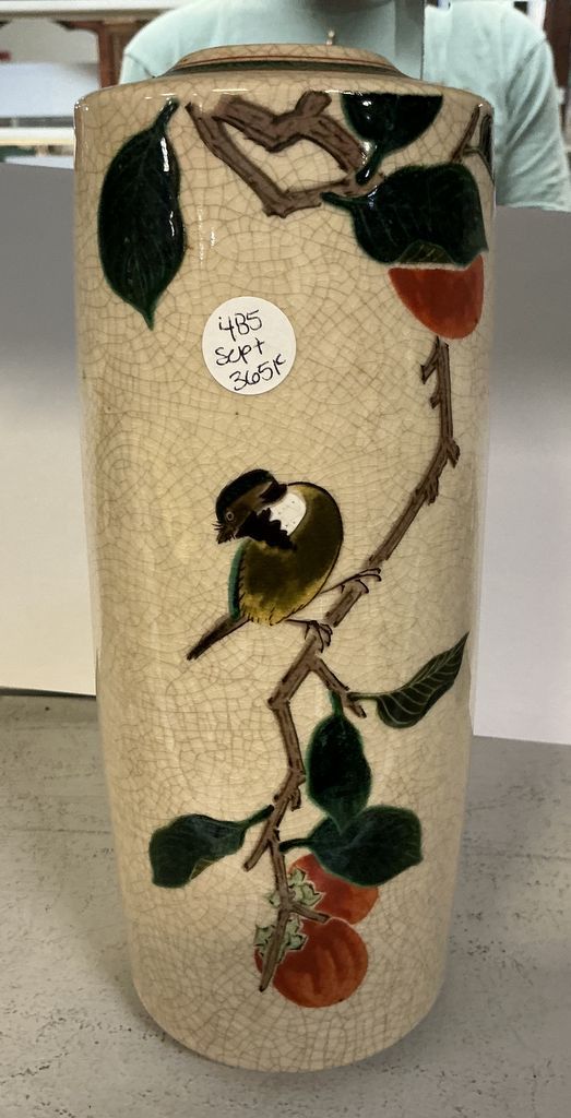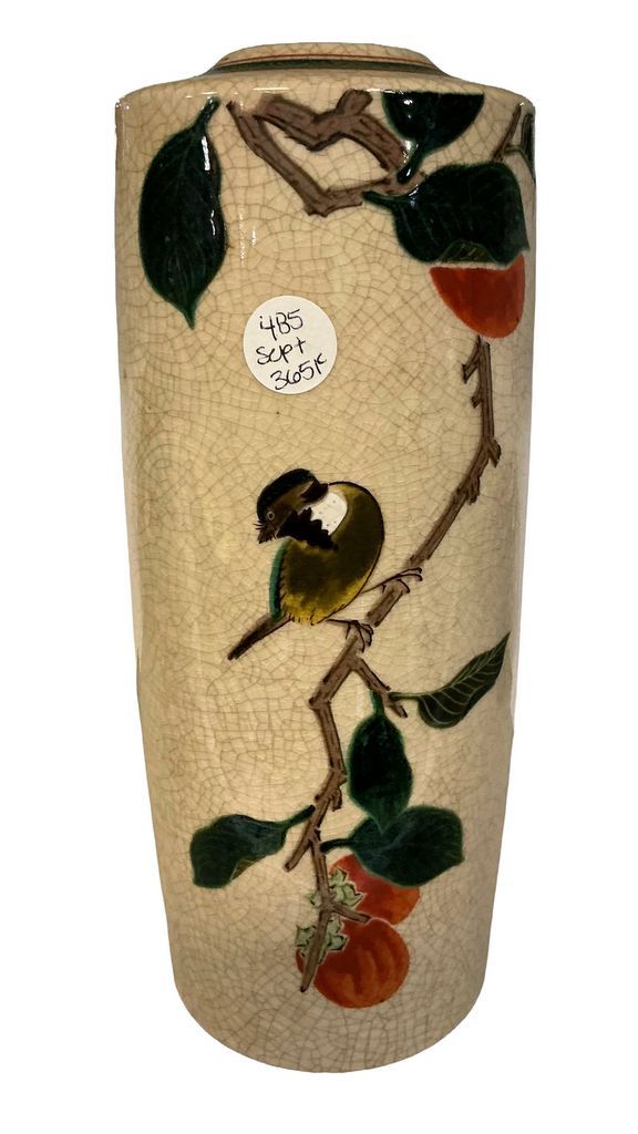 485 VTG Asian Ceramic Bird on Limb Vase 10"h