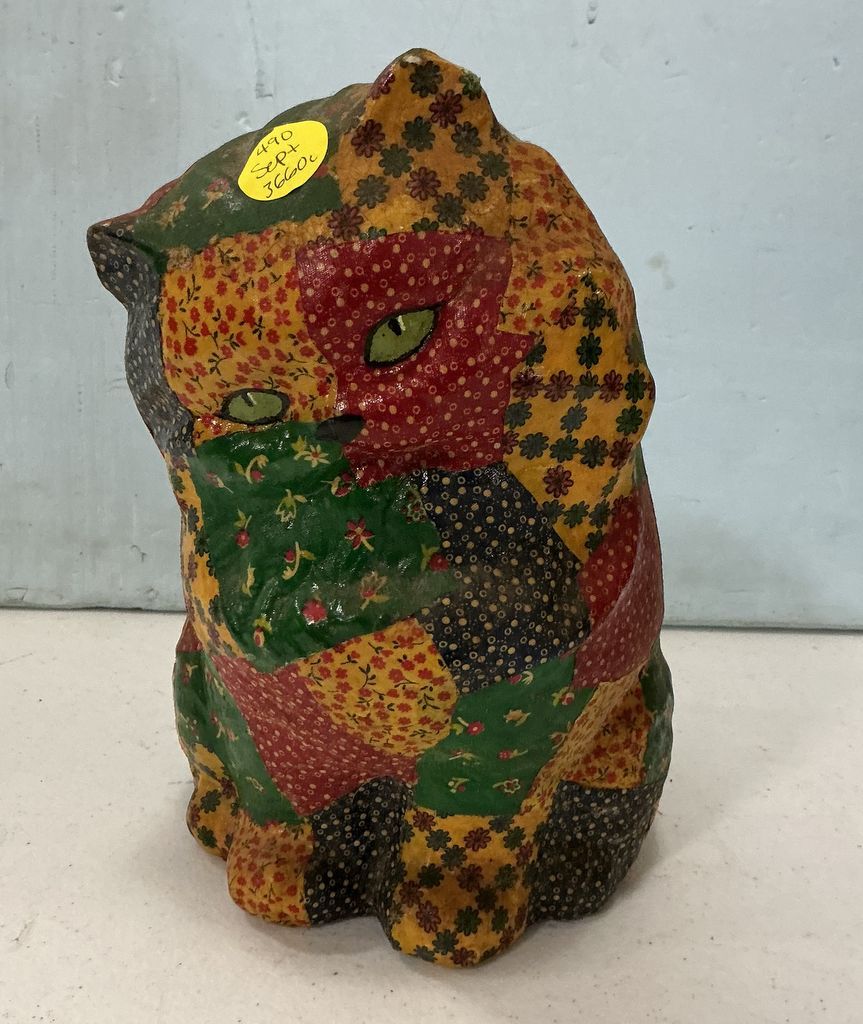 Fork Art Patchwork Cat Figurine 10"h Location Shelf 37 Fork Art Patchwork Cat Figurine 10"h Location Shelf 37