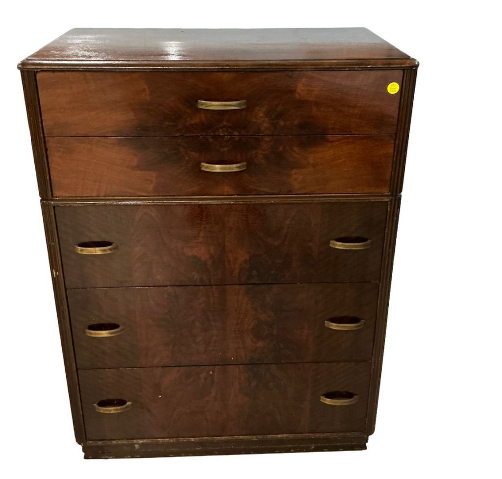 495 1940's Art Deco Burl Chest of Drawers 45"h., 34"w