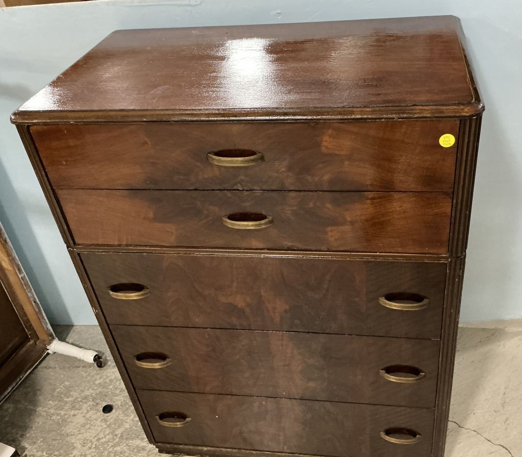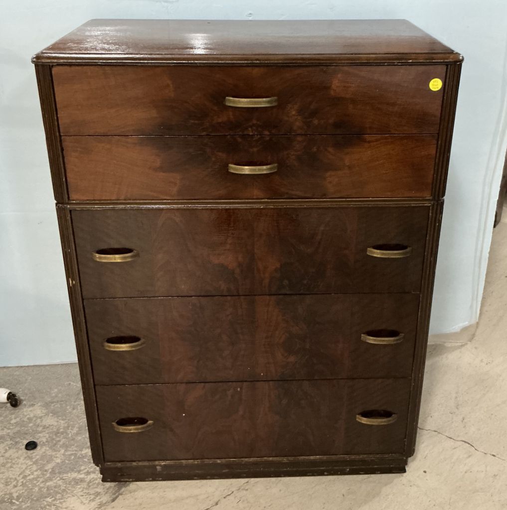 1940's Art Deco Burl Chest of Drawers 45"h., 34"w, light wear. 1940's Art Deco Burl Chest of Drawers 45"h., 34"w, light wear.