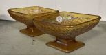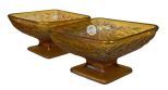 498 Indiana Amber Carnival Glass Pedestal Diamond Shaped Bowls 3"h 7"w