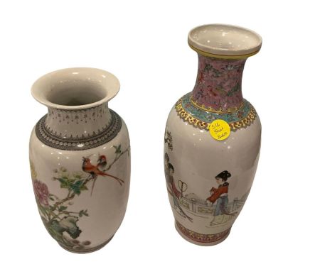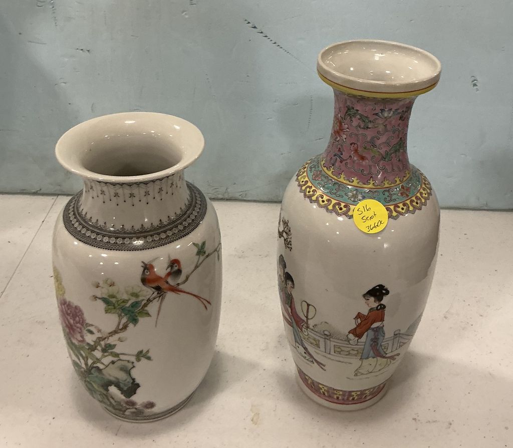516 Two Chinese Porcelain Hand Painted Vases 13"H