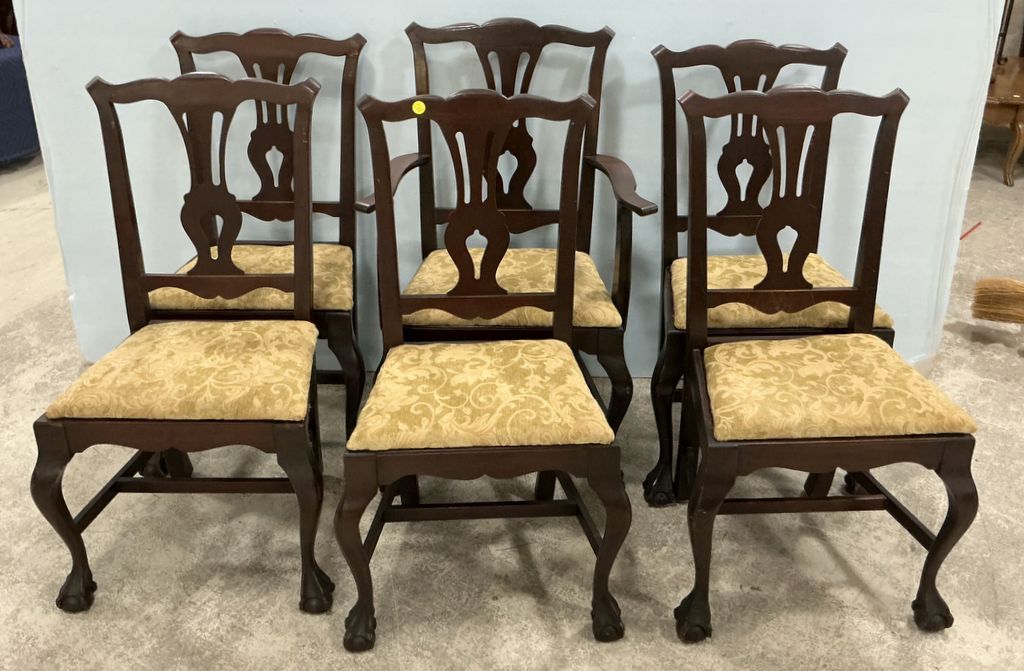 6 Chippendale Style Dining Chairs five sides, one arm chair 6 Chippendale Style Dining Chairs five sides, one arm chair