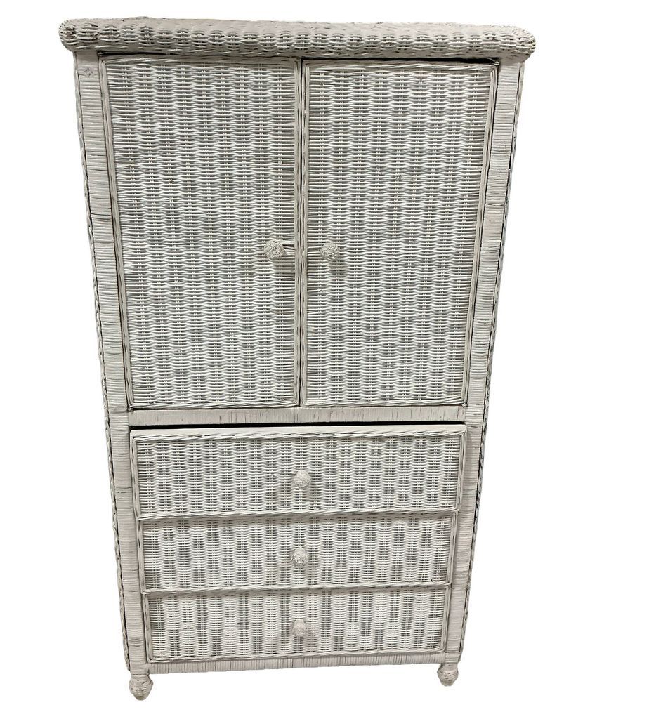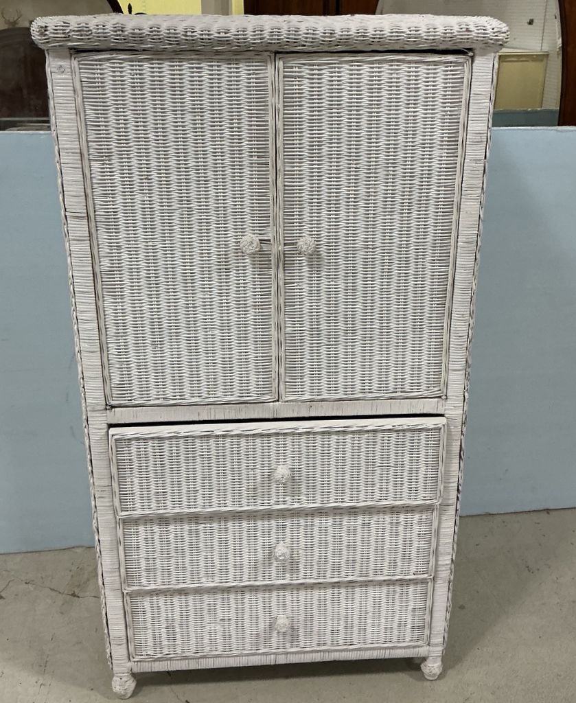 529 White Wicker Two Door Armoire 57"h., 31"w