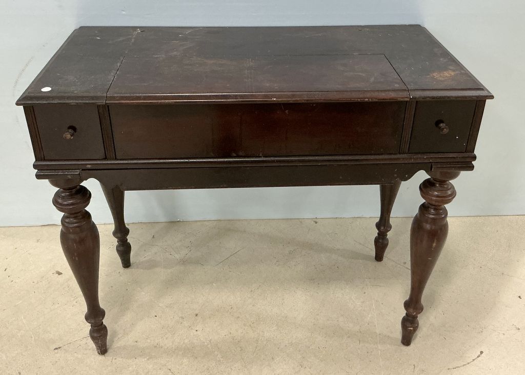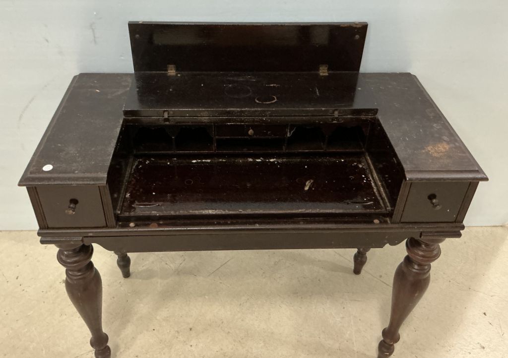 Antique Spinet Desk 31"h, 38"w, finish is worn condition, sculpture seems solid Antique Spinet Desk 31"h, 38"w, finish is worn condition, sculpture seems solid