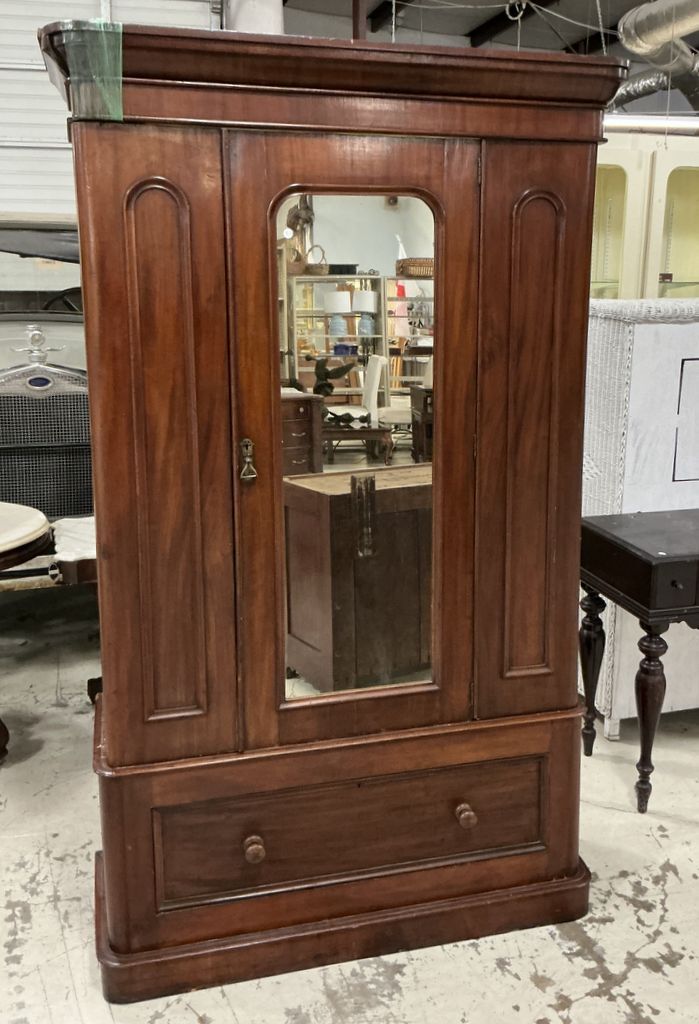 Antique English Single Door Armoire 80"h,. 43"w, mirrored door, light wear Antique English Single Door Armoire 80"h,. 43"w, mirrored door, light wear