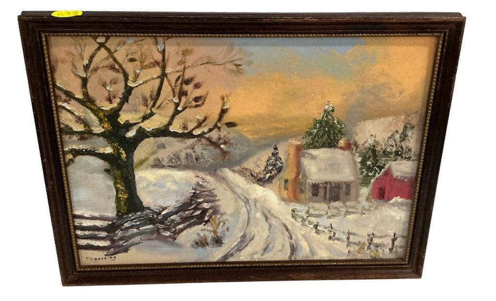 Signed R. Reynolds Folk Art Painting 12"h., 15"w Location Right Metal Shelves4 Signed R. Reynolds Folk Art Painting 12"h., 15"w Location Right Metal Shelves4