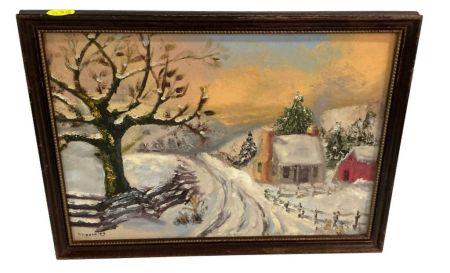 550 Signed R. Reynolds Folk Art Painting 12"h., 15"w