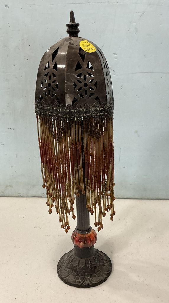 Metal Tealight Candle Holder with Beaded Fringe 17"h Location Shelf 37 Metal Tealight Candle Holder with Beaded Fringe 17"h Location Shelf 37