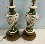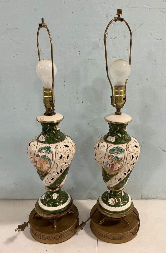 565 Pair Vintage Italian Capodimonte Lamps 29"h