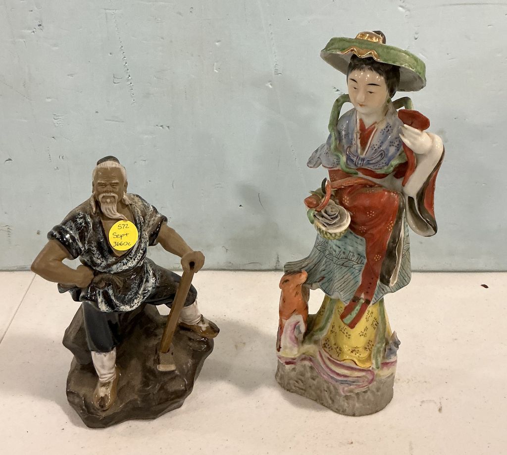 572 Chinese Mudman Figurine and Asian Pottery Sculpture 10"h & 14"h