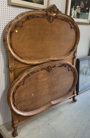 French Rococo 55"h Birds Eye Maple Bed , no rails French Rococo 55"h Birds Eye Maple Bed , no rails