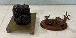 626 Carved Elephant Sculpture and Deer