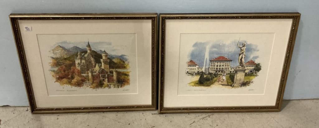 662 Pair of Vitschke Framed Prints 18"h., 21"w,