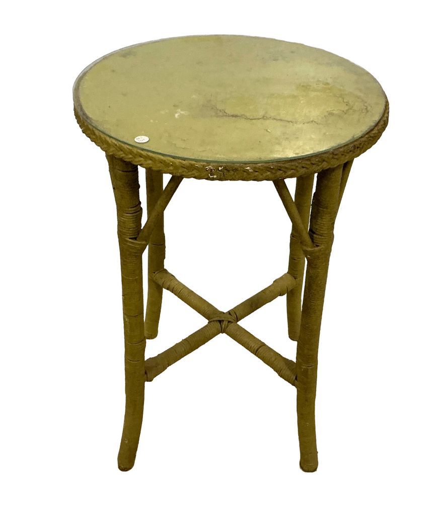 Painted Wicker Side Table 30"h, top has wear. Painted Wicker Side Table 30"h, top has wear.