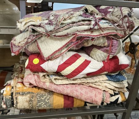 Four VTG Patch Work Quilts Location Right Metal Shelves Four VTG Patch Work Quilts Location Right Metal Shelves