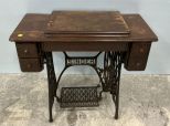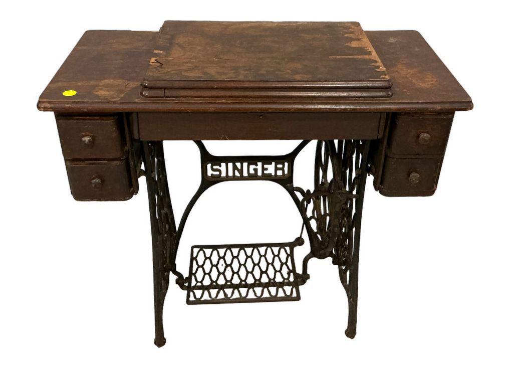 Singer Machine in Singer Cabinet worn, 30"h., 34"w Singer Machine in Singer Cabinet worn, 30"h., 34"w